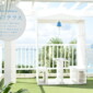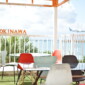 白を基調とした美しいテラスが広がり、沖縄の海を一望しながら、ローカルフードや工芸品を楽しむことができます。
